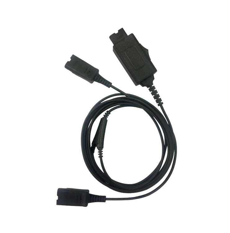 The Addasound Y Training Cable with Mute allows two headsets to connect to a single device, enabling real-time call training with convenient mute control for supervisors.